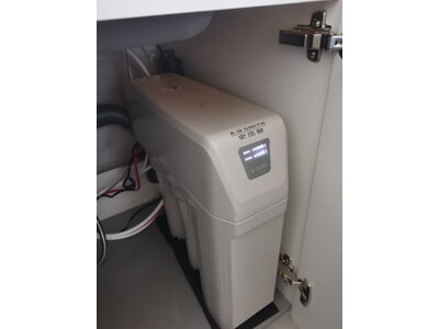 1、易开得SAT-9001Pro净水器安装很娴熟,很快就装好了,终于可以喝到纯净水了,这款是智能的,龙头上有颜色的灯,蓝色是干净的,等到变红就要换滤芯了,前置滤芯半年,后面滤芯一年,出水也可以的!看看后期烧水瓶里会不会有结痂就知道过滤效果如何了!