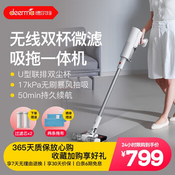 这德尔玛(Deerma)吸尘器家用无线吸尘器手持车载吸尘器洗地机吸拖一体机暴风大吸力双杯过滤除尘...
