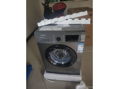 1、美的MD100V33WY洗衣机搬新家了,买了个全自动洗衣机,老家用的半自动的太不方便了,送货师傅送来一打开我就惊讶了,灰色主题,黑色门,非常高端大气上档次,容量也很大,而且大品牌的,值得信赖