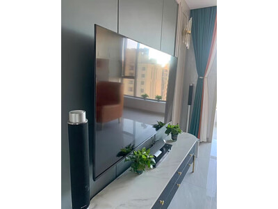 2、长虹电视75d7 pro大小刚好,一直信赖长虹,家里电视都是长虹品牌,反应灵敏音效很棒,画质清晰,物料快捷,安装服务也很到位电视尺寸非常大,占满了整个电视柜儿。开机没有广告系统反应很迅速。语音控制功能非常方便。常用的功能都可以直接用语音,基本不需要了。