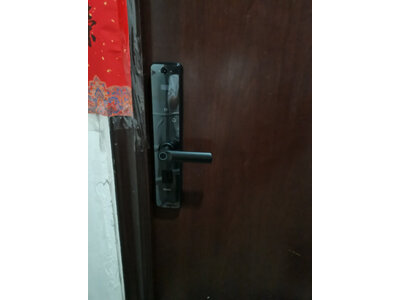 3、英典A3电子锁安装预定很方便,周六下午预定的,周日上午师傅就来安装了,服务态度很好,安装也很快。锁质量可以,外观大气,指纹解锁很灵敏,操作很简单,用智能锁真的很方便。