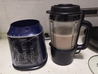 4、九阳B1破壁机不错,挺好的,一直想买,终于等到搞活动了,果断下手购买,九阳大品牌,值得信赖,打磨的豆浆口感非常细腻,无需过滤,直接引用,推荐第二次买同款,头一个送给老妈了,这款性价比感觉还是很不错的,豆浆打出来比较细腻,米糊什么的也很方便,鱼肉可以打碎试了两次没发现有鱼刺,这就很方便了声音方面可以接受,后面高速运转约5-12分钟(各功能时长不同)会比较大声,特别介意声音大小的可以考察更高价位的
