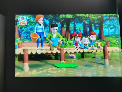 1、爱国者H01投影仪家里想买电视了,媳妇说还是投影仪吧看了好多选了爱国者,一直都认可这个品牌以及质量,事实是果然没辜负我的期望,媳妇很喜欢还有就是买的京东自营店的,京东的售后服务态度真的很好,往往大件有质量保证礼品我都是在京东买的,也都是京东自营店的,希望他们越做越好,这是开灯播放的效果,视觉还不错